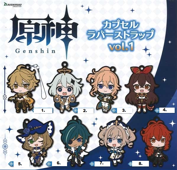 The first collection of Genshin Impact Rubber keychains, from Japan.