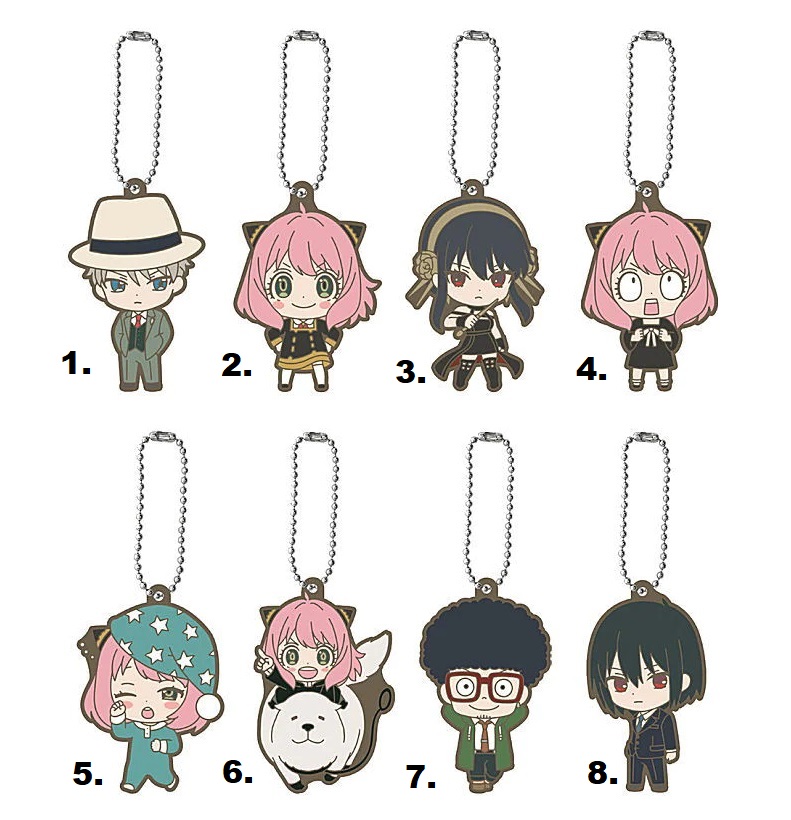 Rubber Keychains of your favourite Spy X Fam Characters, especially a lot of Anya's.